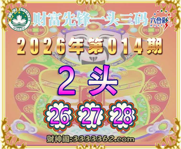 014期:『财富先锋』 🚡一头三码🚡【2头主:26.27.28】开:龙26