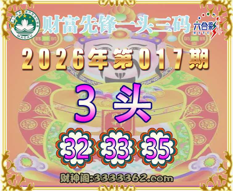 017期:『财富先锋』 🚡一头三码🚡【3头主:32.33.35】开:狗32