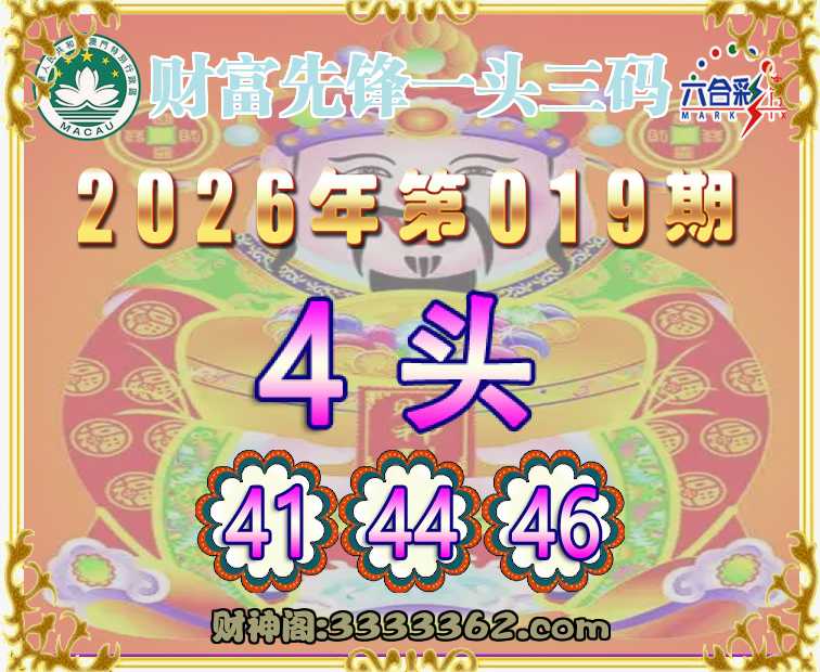 019期:『财富先锋』 🚡一头三码🚡【4头主:41.44.46】开:猴46