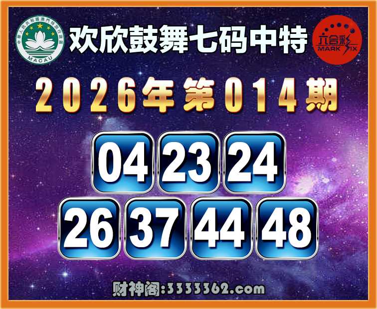 014期:《欢欣鼓舞》 🚡七码中特🚡【04.23.24.26.37.44.48】开:26
