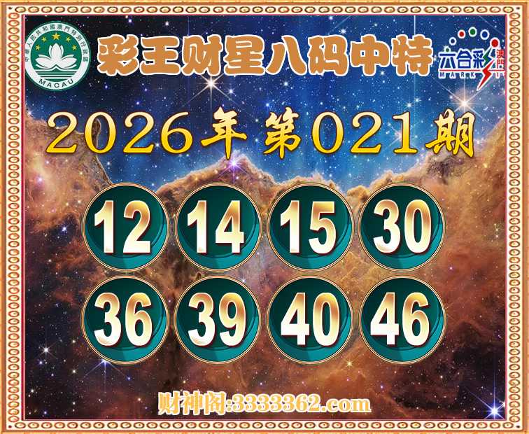 014期:『彩王财星』 🩴八码中特🩴开:26