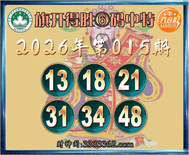 015期:《旗开得胜》 🥧⑥码中特🥧【13.18.21.31.34.48】开:31