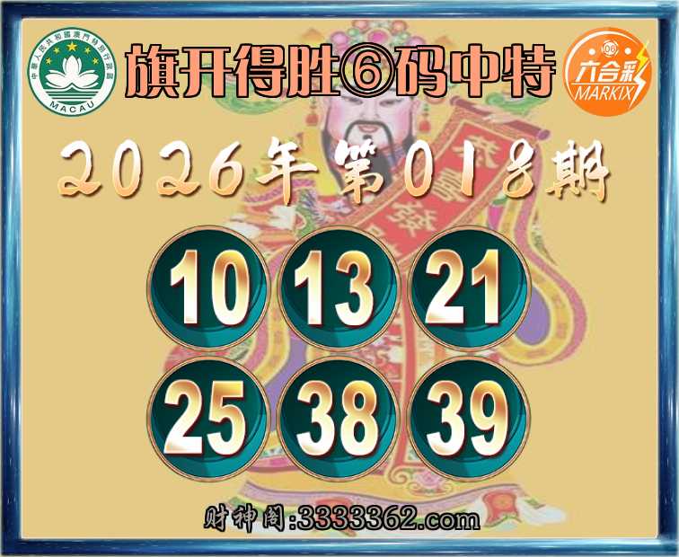 018期:《旗开得胜》 🥧⑥码中特🥧【10.13.21.25.38.39】开:39