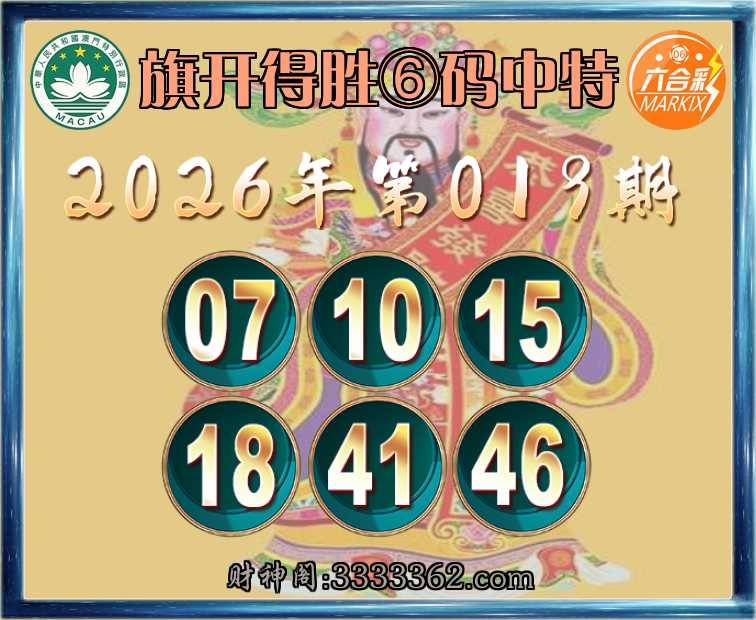 019期:《旗开得胜》 🥧⑥码中特🥧【07.10.15.18.41.46】开:46