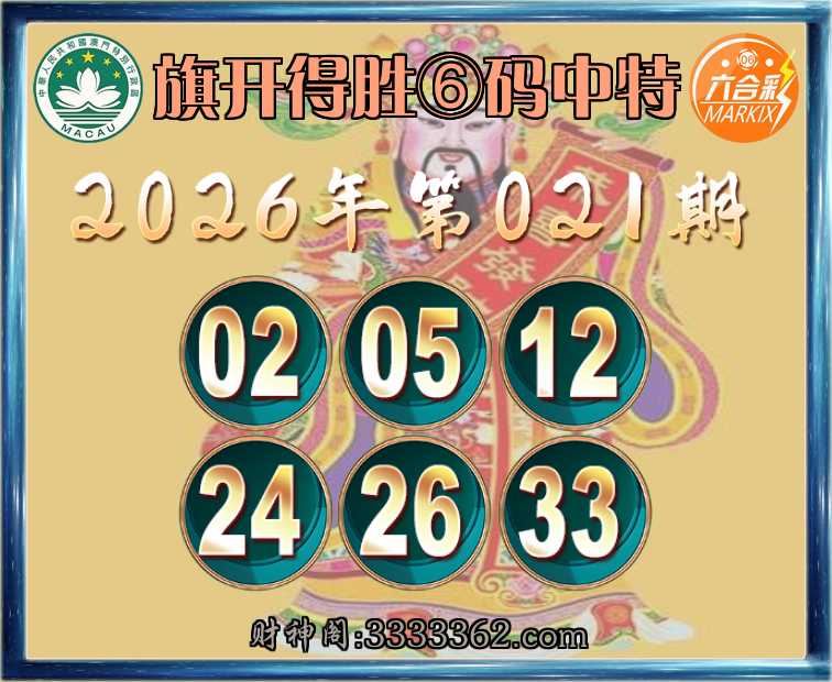 021期:《旗开得胜》 🥧⑥码中特🥧【02.05.12.24.26.33】开:00准