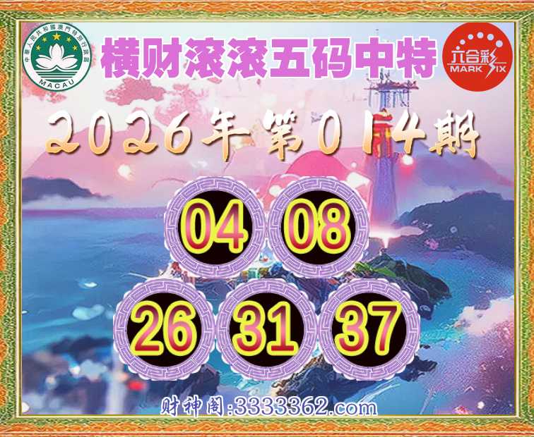 014期:《横财滚滚》 🎆五码中特🎆【04.08.26.31.37】开:26