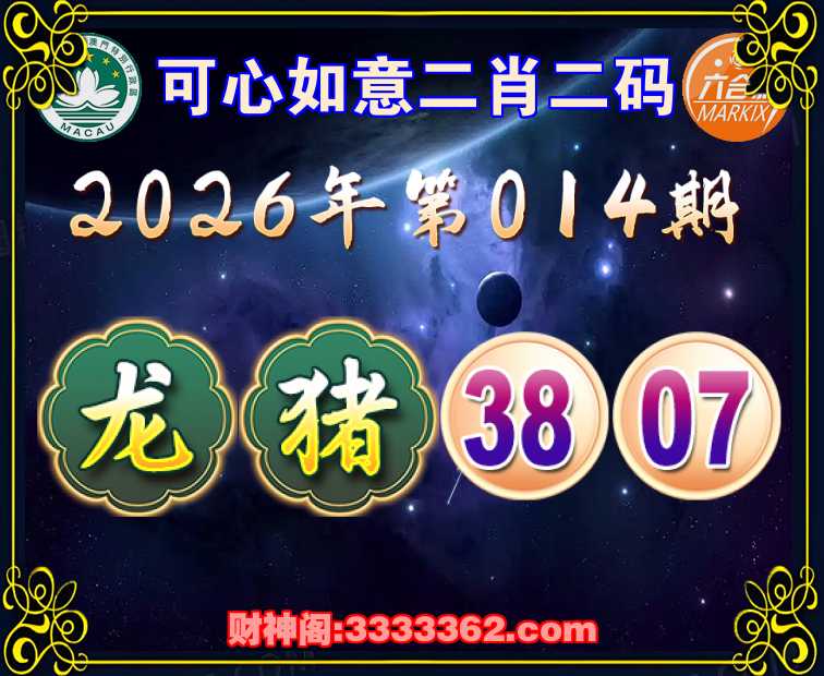 014期:〖可心如意〗 💎二肖二码💎【猪】【38.07】开:龙26